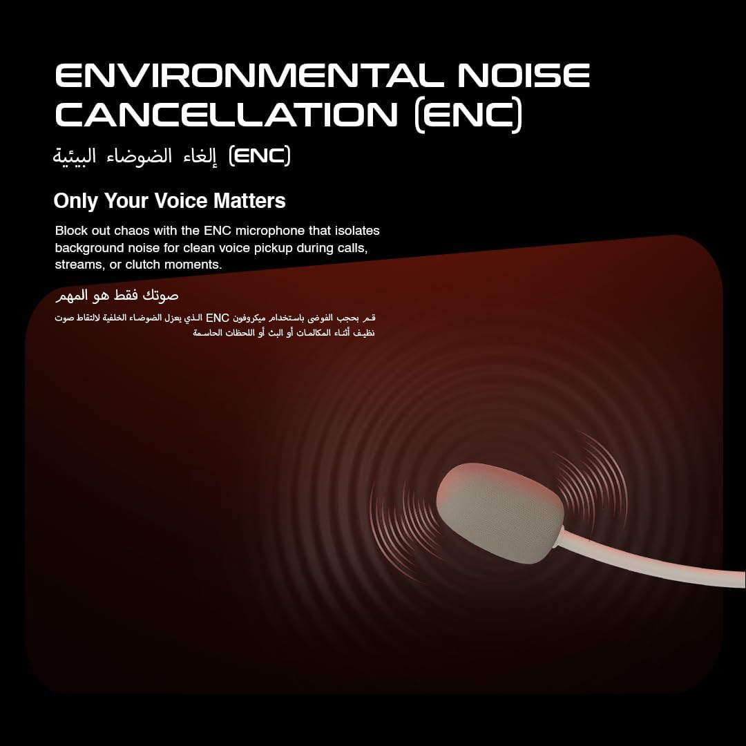 Powerful 50mm audio drivers deliver rich bass and crystal-clear highs, letting you hear every footstep, explosion, and in-game detail. The ultra-low latency 2.4GHz connection ensures real-time audio with zero lag—perfect for fast-paced gaming. Communicate clearly with your team using the ENC noise-canceling microphone, designed to reduce background noise for clean voice chat.