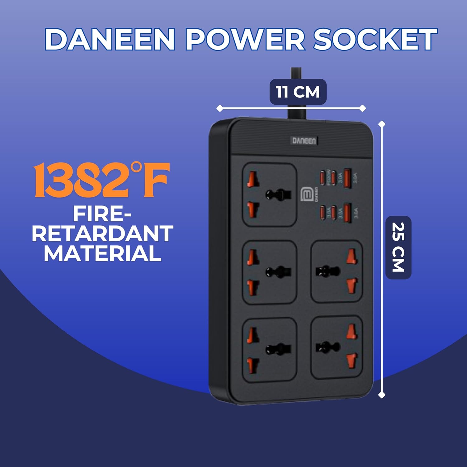 Built with durability and safety in mind, the DANEEN power strip is perfect for charging smartphones, tablets, laptops, gaming consoles, and other electronics—all at once.